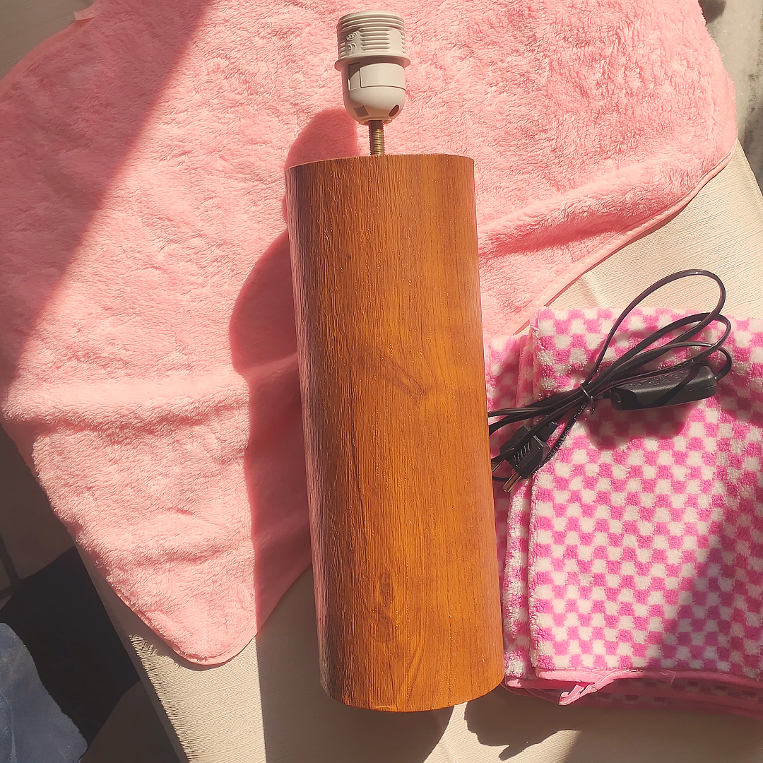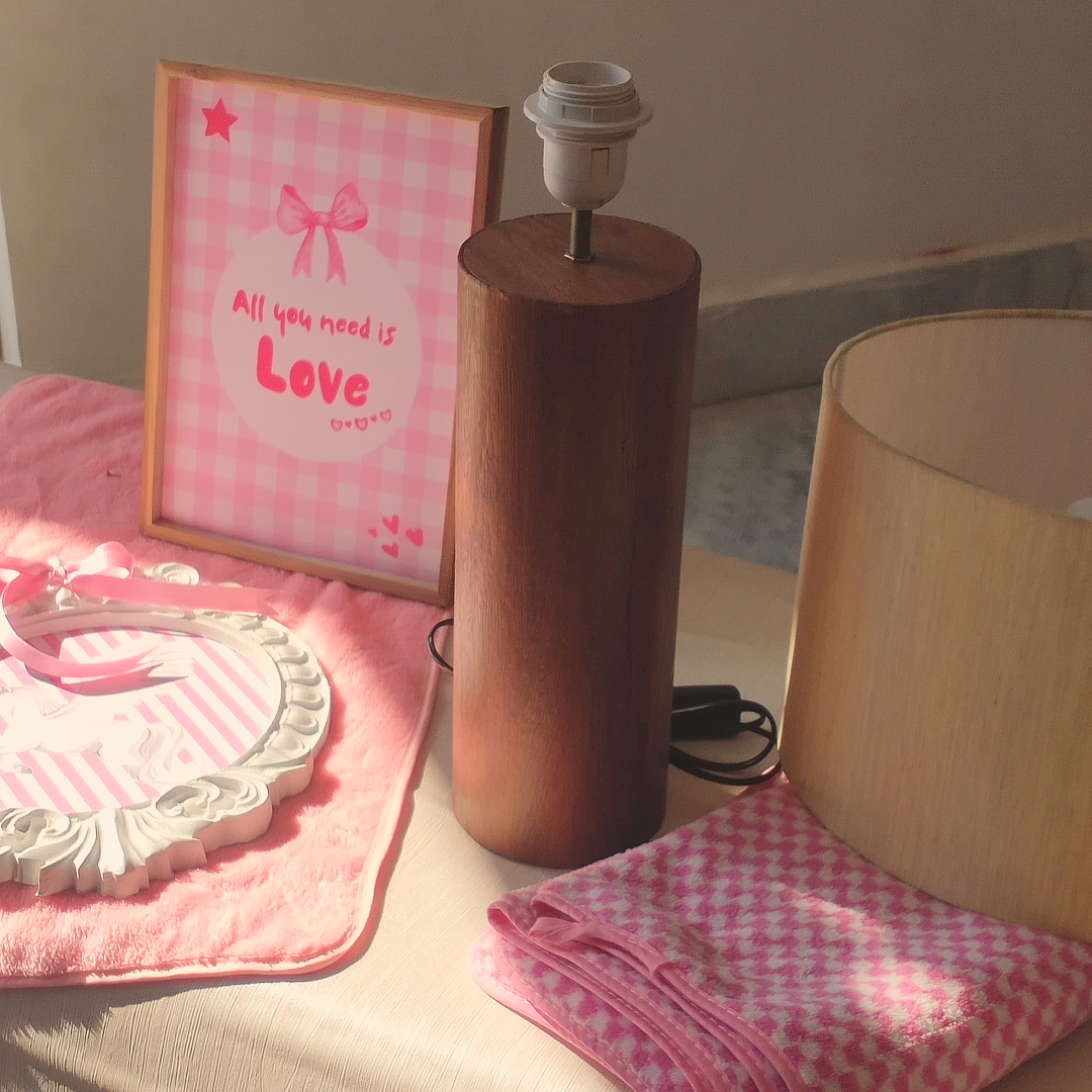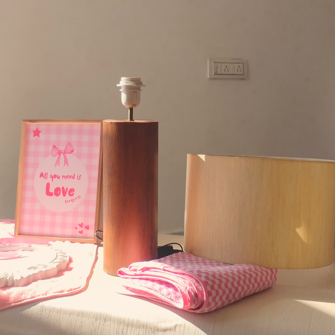 - Material Used: UPVC pipe, Wood-texture wrapping, Linen for lampshade