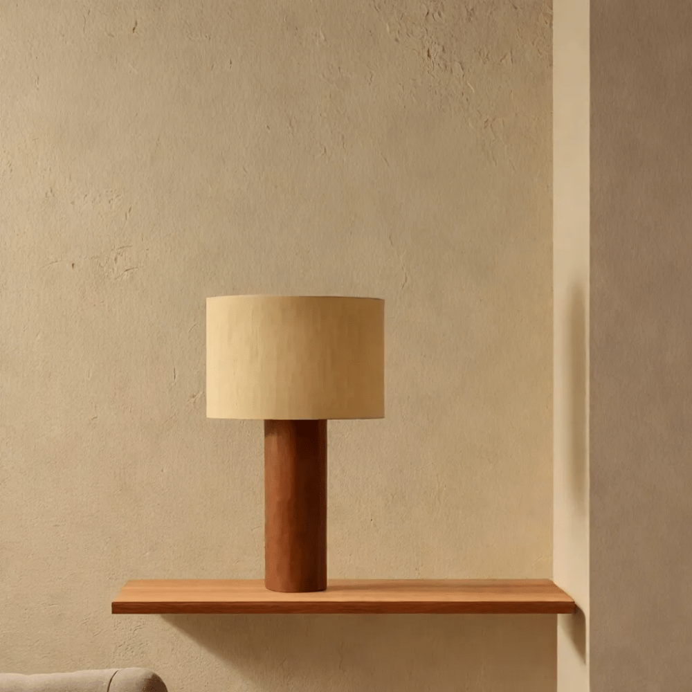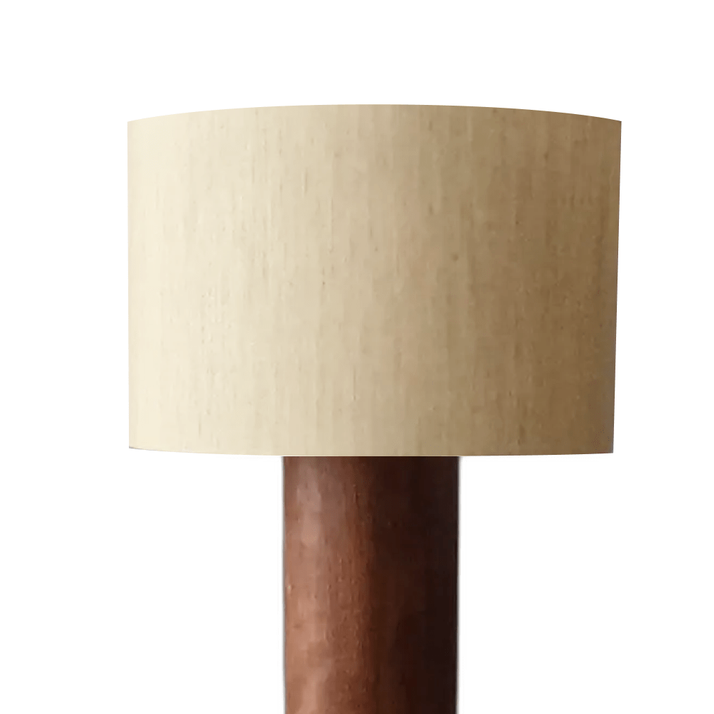- Color: Natural wood Texture finish for base; Cream-colored shade