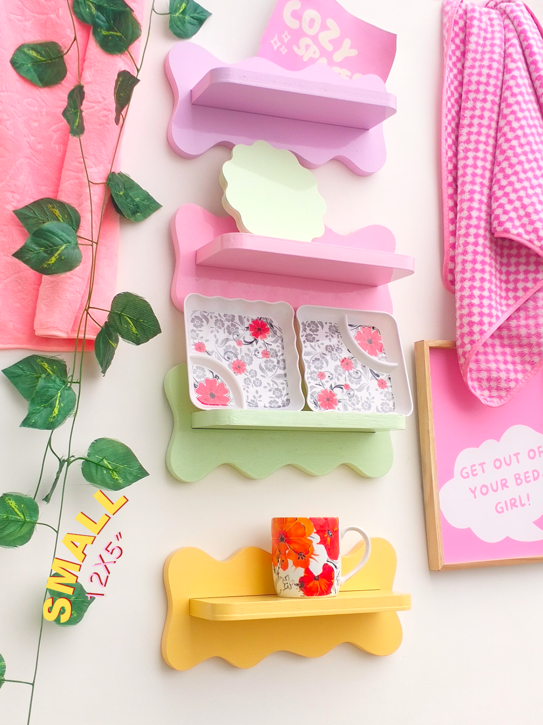 Perfect for showcasing your favorite plants, books, or quirky trinkets, these pastel-colored shelves add a fun and whimsical vibe to any room. Whether it's your cozy reading nook or a vibrant living area, these shelves bring both functionality and charm. 🌸✨